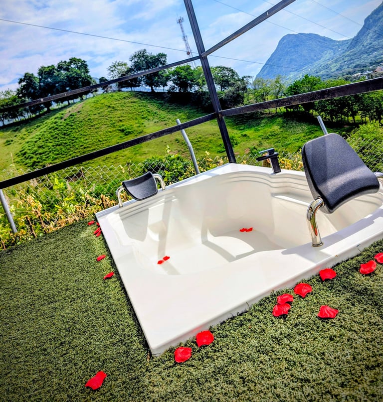 Incluye servicios del Hotel como: Piscina, Parqueadero, Zona de Bronceo, Zona de juegos, Hamacas, Zona de Billares, cancha de voley, Capilla y Mirador.